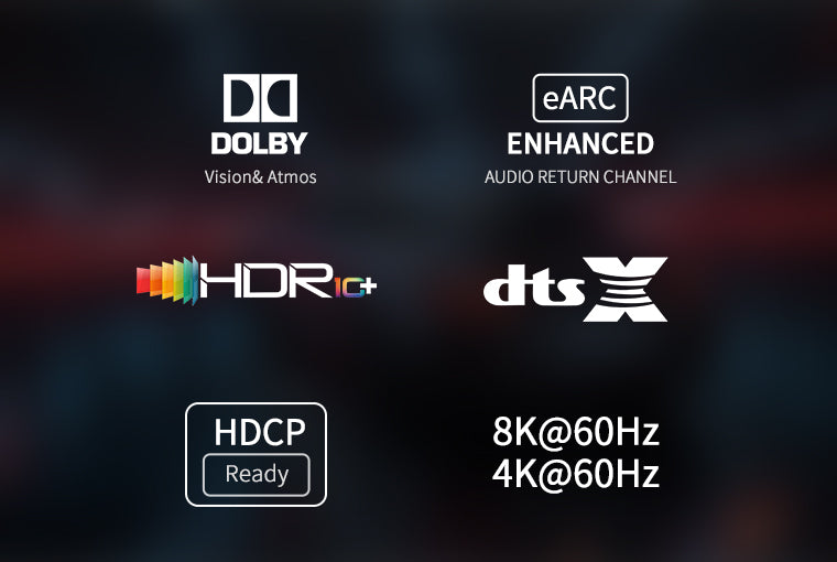 • Supports Dynamic HDR 10, Variable Refresh Rate (VRR), Quick Frame Transpor(QFT) and Quick Media Switching (QMS) , enhanced Audio Return Channel (eARC). Ideally suited for home cinema systems, video conferencing, projector systems and more.