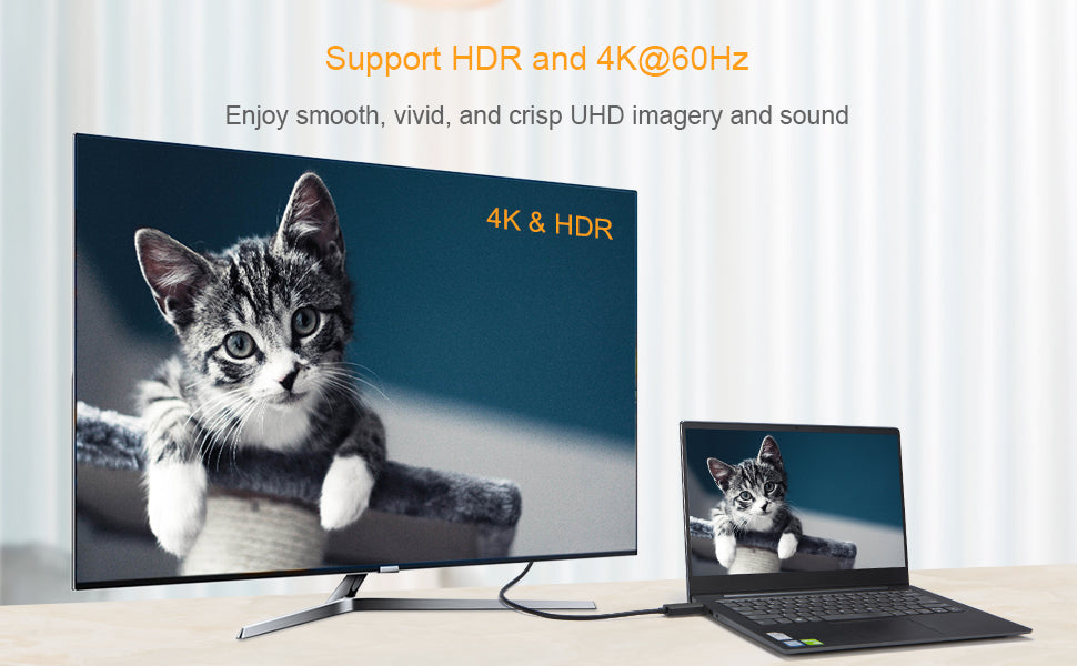 With HDR and 4K@60Hz support, enables you to view sharper images and enhanced video with brighter colors and greater contrast.