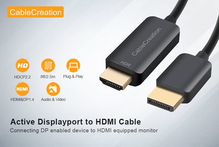 The unidirectional DP to HDMI cable connects DP-equipped computer / graphics card to monitor, HDTV or projector with HDMI output for audio and video streaming.