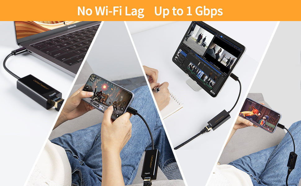 The USB C to Ethernet Adapter can provide speed up to 1 Gbps stable internet connection, downward compatible with 100Mbps/10Mbps/1Mbps.