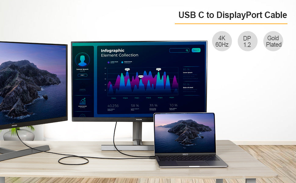 CableCreation USB 3.1 Type C to DisplayPort Cable 4K@60Hz - Best solution for Work and Entertainment