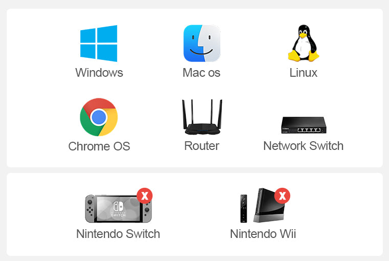 • Does not support Windows RT, Android, Nintendo Switch, Wii, Wii U