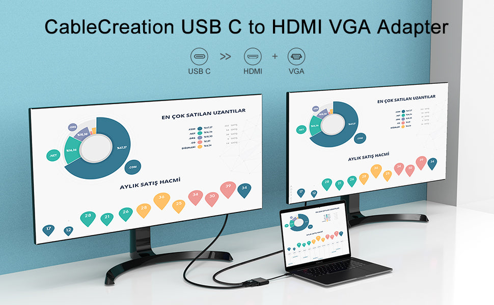 • This USBC to HDMI +VGA adapter, the HDMI Port supports resolution up to 4k*2k@30HZ. Support VGA Resolution up to 1920X1200@60Hz. 9Gbps Bandwidth let you streaming smoothing online gaming or HD movie to TV. Have a personal cinema.