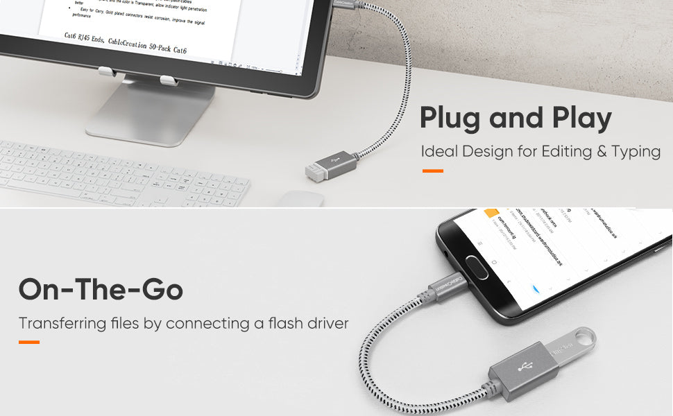 The micro usb to usb Cable Enabled android or windows micro usb phones or tablets work as PC host by connecting a flash driver or camera.
