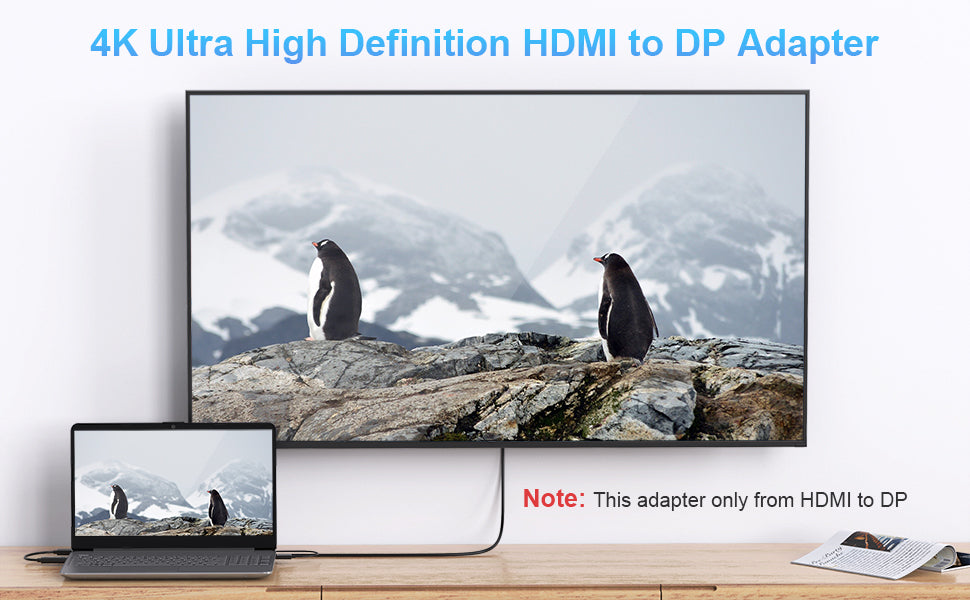2. This HDMI to DisplayPort adapter 4K is NOT bi-directional. It only converts an HDMI output signal (source device) to DisplayPort (monitor/display).