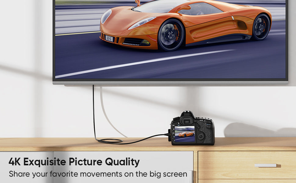 The CableCreation High-Speed Mini-HDMI to HDMI Cable meets the latest standard, which means it considerably expands bandwidth up to 18 Gbps, offers 4K@60Hz video resolution (four times more clarity than 1080p, and supports the wide-angle theatrical 21:9 video aspect ratio.